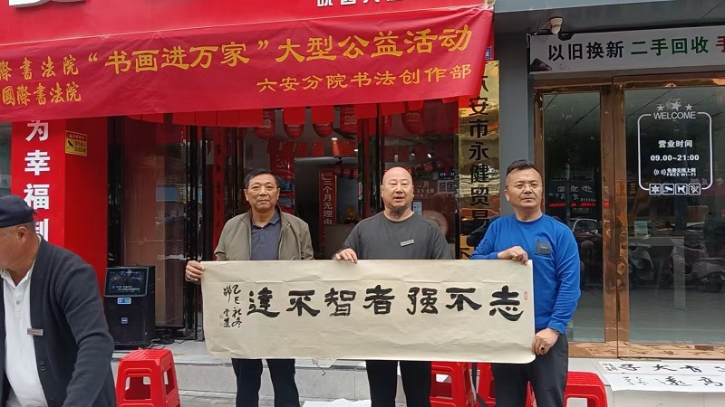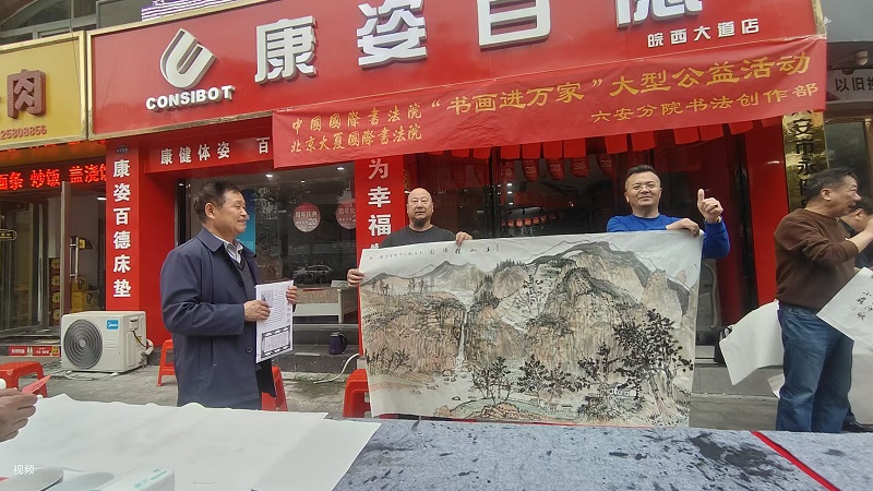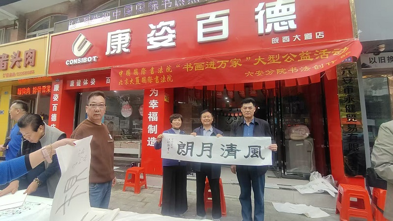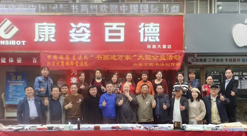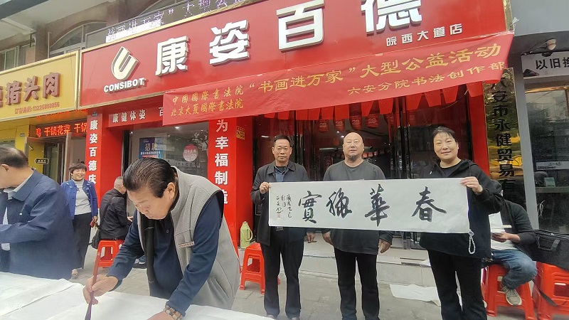 10月15日上午9时,中国国际书画院、北京大夏国际书画院 六安分院“书画进万家”大型公益活动首场启动仪式,在六安市裕安区康姿百德营销中心门前隆重举行。仪式上,中国国际书画院、北京大厦国际书画院六安分院院长邵兴荣发表了热情洋溢的讲话:他详细介绍了中国国际书画院和北京大夏国际书画院的基本情况,阐述了开展“书画进万家”大型公益活动对于弘扬中华优秀传统文化、丰富群众精神文化生活的重要意义与目标。邵兴荣院长对康姿百德营销中心为此次活动提供的支持表示衷心感谢,并强调此次活动是推动高雅艺术深入基层、服务群众的重要实践。仪式由康姿百德营销中心总经理杨思源主持。此次“书画进万家”活动走向社区,不仅为市民带来了高雅的艺术享受,为更多的爱好书画者提供了精神食粮。活动现场书画家们共为过往市民书写书法作品近百幅。也搭建起了专业书画家与普通民众之间的桥梁。