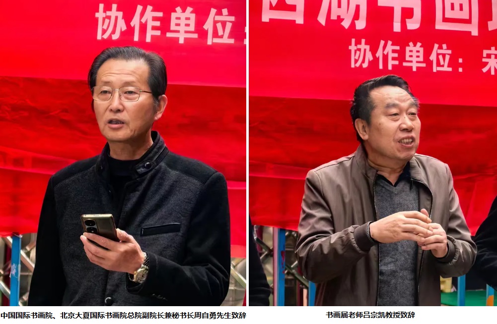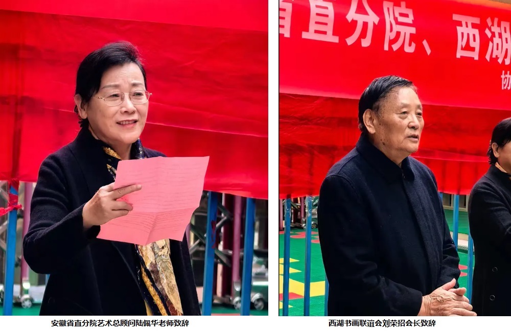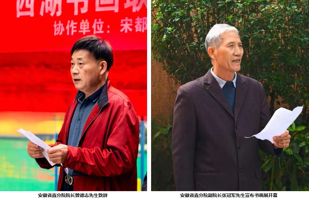 中国国际书画院总院副院长兼秘书长周自勇先生,书画界的老师吕宗凯教授,安徽省直分院艺术总顾问陆佩华老师,西湖书画联谊会刘荣招会长,安徽省直分院曾德志院长先后致辞,各位领导和专家对安徽省直分院在本次书画展过程中的筹备、组织、作品收集、装裱、场地准备、布展等工作给予充分肯定,并对本次书画展能如期展出表示热烈祝贺。