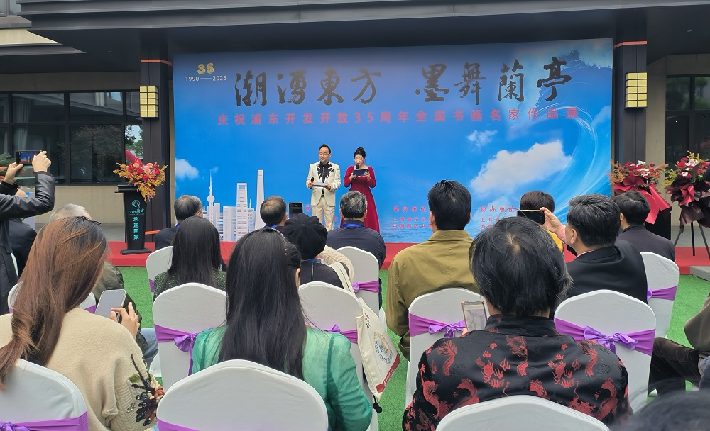 今年是上海浦东开发开放35周年,为纪念这一改革开放的伟大创举,11月12日,一场以“潮涌东方,墨舞兰亭”为主题的全国书画名家作品展在浦东新区云栖兰亭康养社区隆重举行。此次书画展由上海中外文化艺术交流协会、东久企业发展(上海)有限公司、上海海上兰亭书法院主办,上海浦东汉唐书院、中国国际书画院承办,上海浦东新区书法家协会、海南徽韵书画院协办。