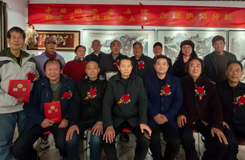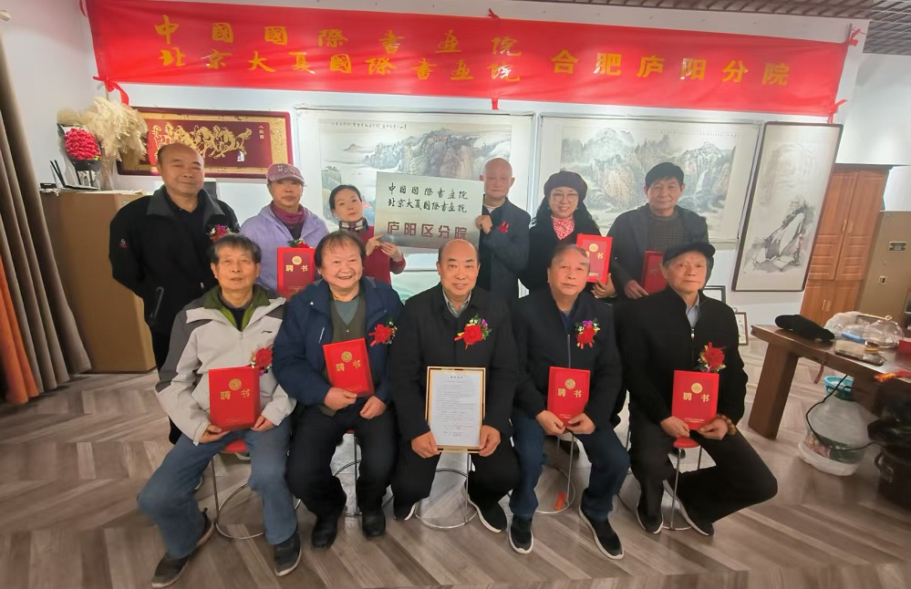 初冬暖阳,翰墨飘香。12 月2 日下午,中国国际书画院北京大夏国际书画院合肥市庐阳分院成立大会暨授牌仪式,在合肥市吾悦广场办公楼6 楼608 室隆重举行。室内墙上红色会标格外醒目,四面悬挂着一幅幅精美的书画作品,洋溢着浓厚的艺术氛围。