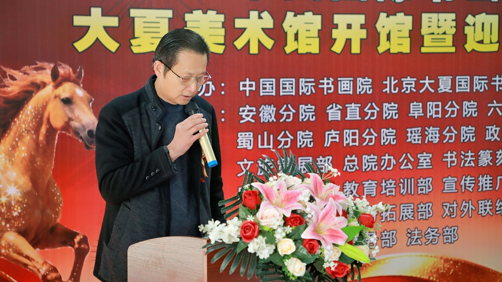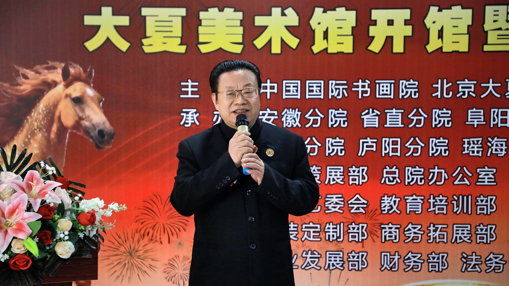 紧接着,中国国际书画院艺术总顾问、新任大夏美术馆馆长陈聪先生上台讲话。他深情地赞扬了艺术家们孜孜追求、无私奉献的品质,强调了美术馆的重要功能。