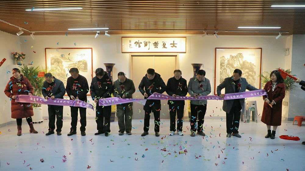 最为激动人心的时刻是大夏美术馆开馆剪彩仪式。剪彩领导、嘉宾王成、江枫、陈聪、蒋立功、周邦宇、周立安、许梅生、刘公华在工作人员的引导下移步至剪彩区——大夏美术馆门口。主持人宣布吉时已到,剪彩仪式正式开始。剪彩嘉宾们手持金剪,共同剪断了象征着开启新篇章的彩带,其时鞭炮齐鸣,掌声雷动。随后,执行院长王成正式宣布美术馆开馆,并给大夏美术馆馆长陈聪颁发了聘书。常务副院长江枫给副馆长陆友明颁发了聘书,标志着大夏美术馆领导班子正式组建,美术馆运营正式开始。