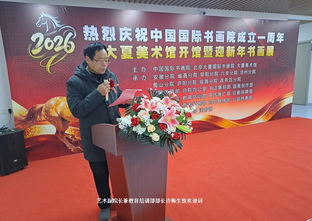 2026年1月26日上午9时整,由中国国际书画院、北京大夏国际书画院教育培训部主办的迎新年书画展在大夏美术馆盛大开幕。