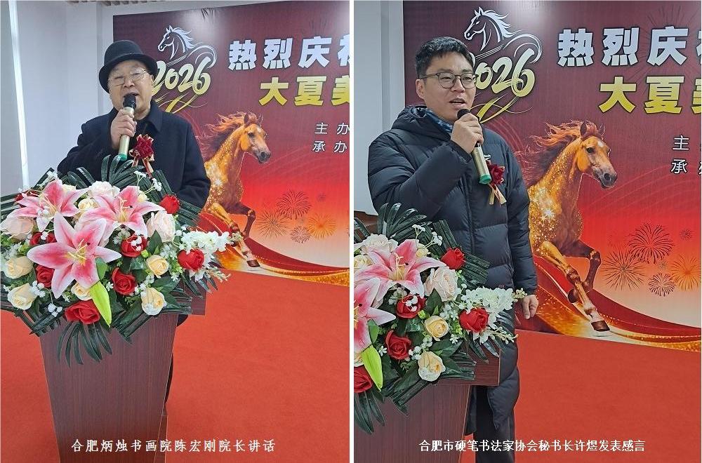 开幕式由两院行政副院长兼文旅策展部部长陆友明主持,在雄壮的《国歌》声中,活动正式拉开序幕。热烈的掌声中,艺术副院长兼教育培训部部长许梅生首先致欢迎词,并对教育培训部展出的书画作品给予高度评价。接着,常务副院长江枫发表了重要讲话,对书画展成功举办表示热烈祝贺!嘉宾代表--合肥炳烛书画院院长陈宏刚先生发表了热情洋溢的讲活,合肥市硬笔书法家协会秘书长许煜代表合肥市硬笔书法家协会,发表了感言,表达了自己对书画艺术独到的见解。